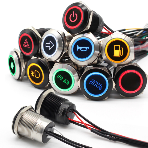 16mm Preto à prova d' água carro levou luz Plana 12v Vermelho Verde Azul Âmbar branco lâmpada indicadora com personalizar o símbolo